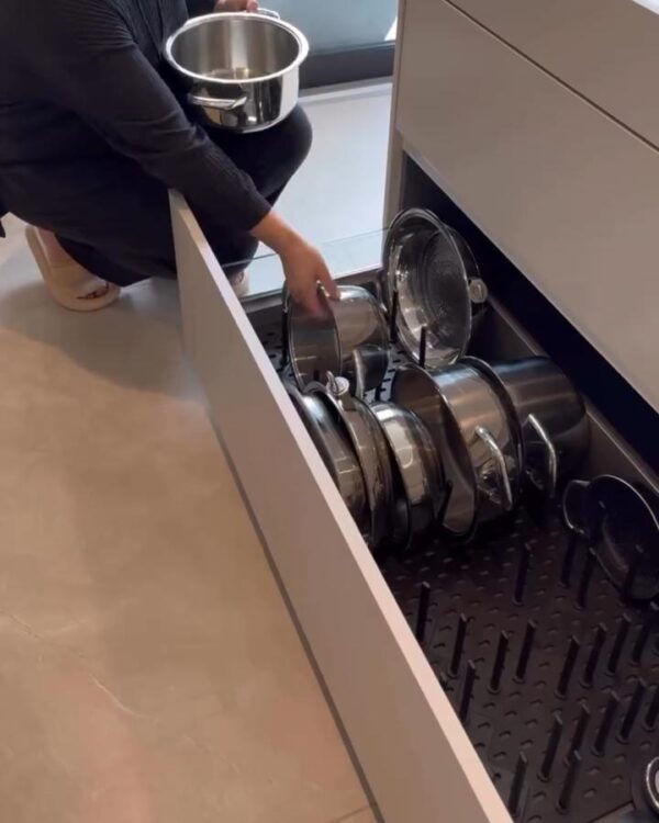 10. Use deep drawer organisers to tame pans and lids