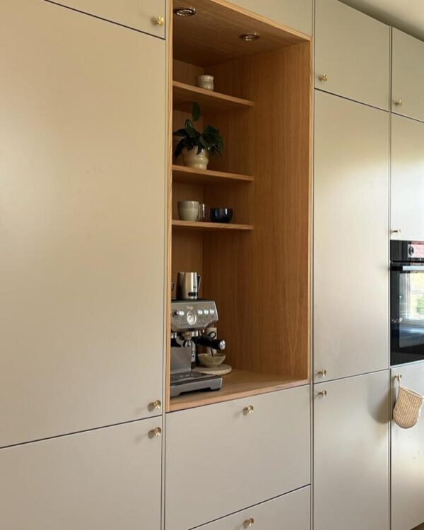 A built-in coffee nook is one of those IKEA kitchen hacks that makes daily life feel a little more luxurious, and the setup by @champagne.chaos shows why it works so well. Instead of leaving mugs, beans and appliances scattered across the counter, everything gets its own dedicated zone.