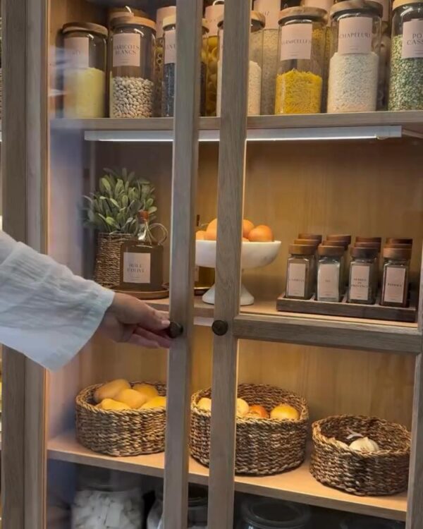 What makes this approach work is the balance between order and warmth. In the pantry from @kawtar_decoo, baskets, labels and visible staples turn everyday storage into part of the kitchen design.