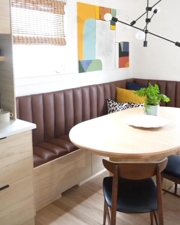 What makes the version from @mailey_elaine stand out is how tailored it feels. The upholstered back, rounded table and fitted joinery make the corner look like a proper dining nook rather than spare seating pushed against a wall.